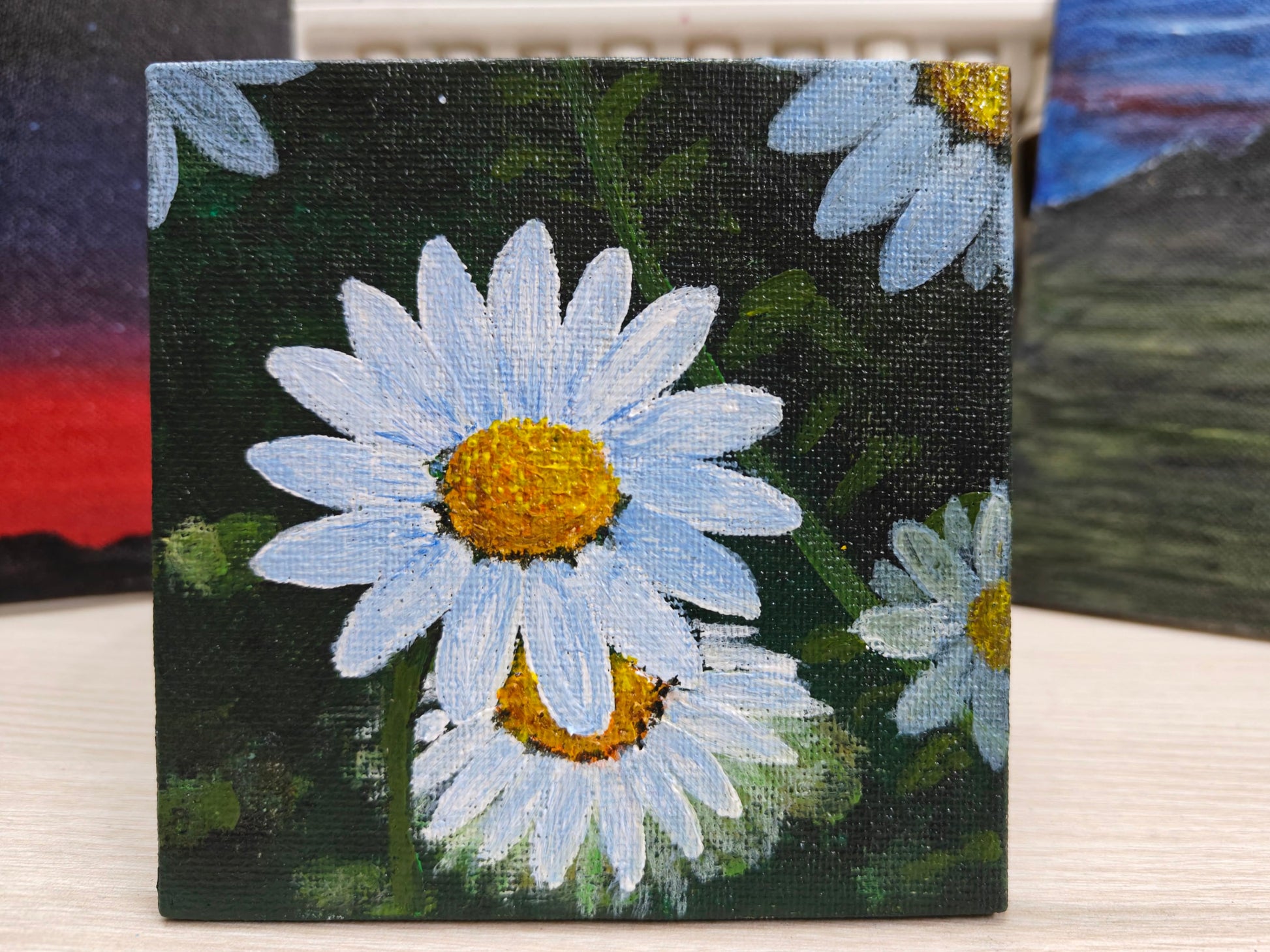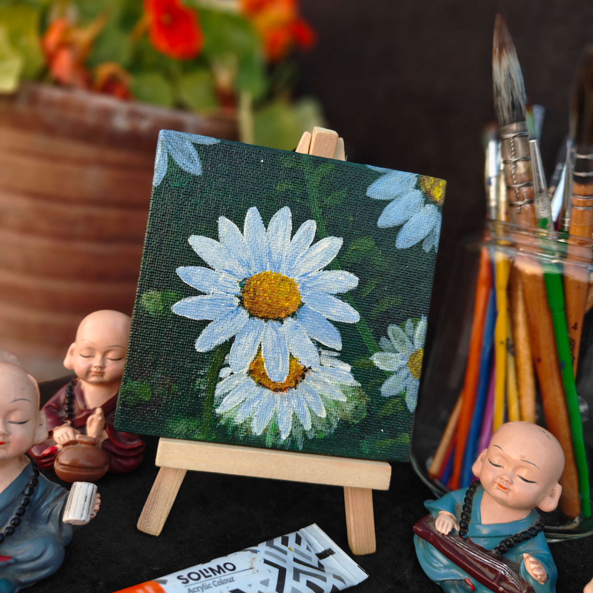 "Daisy Delight" celebrates the timeless charm of nature, featuring a single daisy at its heart, framed by graceful petals.